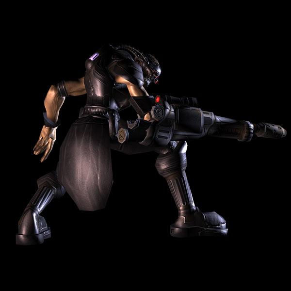 Ghosts epitomize the height of human evolution and physical conditioning. Born with incredible psionic potential, these agents are quarantined and trained from infancy to channel their psionic energies to augment their natural physical strength and endurance. Some extraordinary individuals can run at remarkable speeds, and leap tall obstacles. Excitable media rumors of long-range telepathy, telekinesis, and even mind control or other exotic powers have all added to the grisly reputation of ghosts cultivated by their masters [1]. As a precautionary measure, Psychic Dampeners are surgically implanted in all ghosts.They are equiped with light suit modified individually for each ghost. Thie black suit, though it´s not as robust as marine´s, it provides fair protection. As well as other suits, it has life support and NBC protection. The suit is laced with a form of psi-sensitive artificial muscle fiber. Thus, a typical ghost is tougher, stronger, and faster than even a well-trained but otherwise average terran [1]. Reflectors are replaced by sensitive optics in helmet, because the light would reveal the ghost during covert operations, which are his primary goal. The helmet has built-in several sensors e.g. thermovision, infravision/image enhancer, zoom and multifunctional HUD. Therefor, the ghost is able to see in almost any environment or even in pitch black while unseen. Ghotst undergo very tough training so they are very dexterous and fast even in difficult terrain.